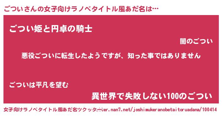 | 意味不明あだ名 | 『住所不定無職ごつい(56歳)』『自称ごつい』 |