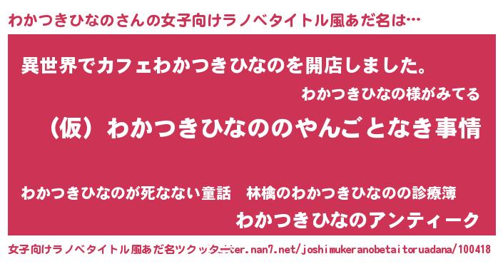 | 男性向けラノベタイトル風あだ名 | 『わかつきひなのの憂鬱』 |