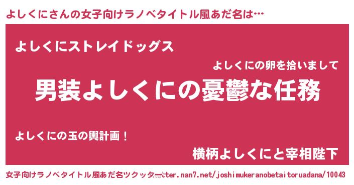 | ピコ太郎風あだ名 | 『ヨシ太郎』『ピヨ八郎』『ヨコ四郎』 |