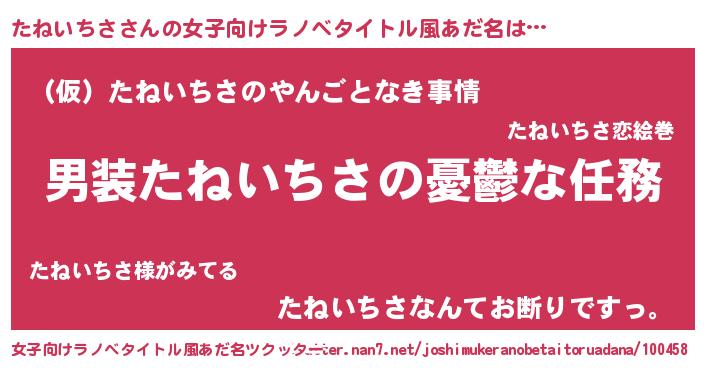 | 胡散臭い通販商品みたいなあだ名 | 『モテモテ間違いなしブレスレット…その名も「たねいちさ」』 |
