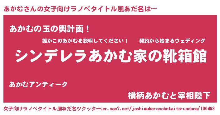 | 男性向けラノベタイトル風あだ名 | 『冴えないあかむの育てかた』 |