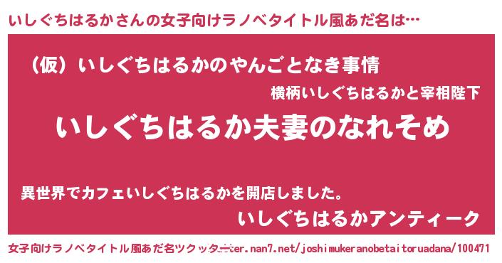 | 胡散臭い通販商品みたいなあだ名 | 『100人中100人が認めたイリジウム磁石…その名も「いしぐちはるか」』 |