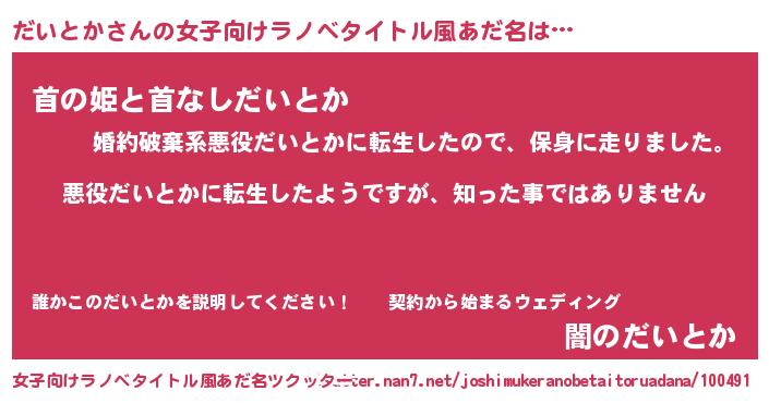 | 意味不明あだ名 | 『住所不定無職だいとか(39歳)』 |