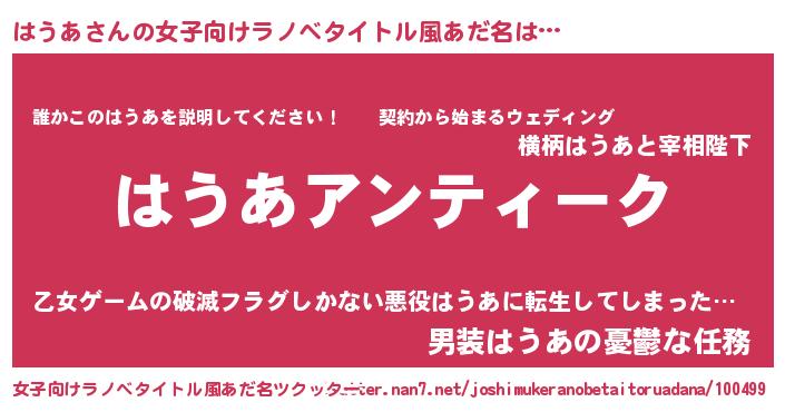 | 自動車の名前っぽいあだ名 | 『レクハス』『ハウティマ』 |