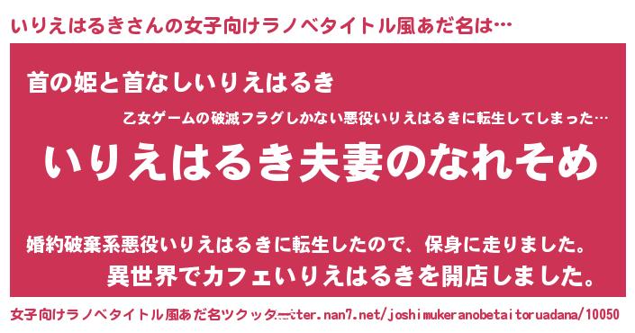 | 胡散臭い通販商品みたいなあだ名 | 『100人中100人が認めたイリジウム磁石…その名も「いりえはるき」』 |