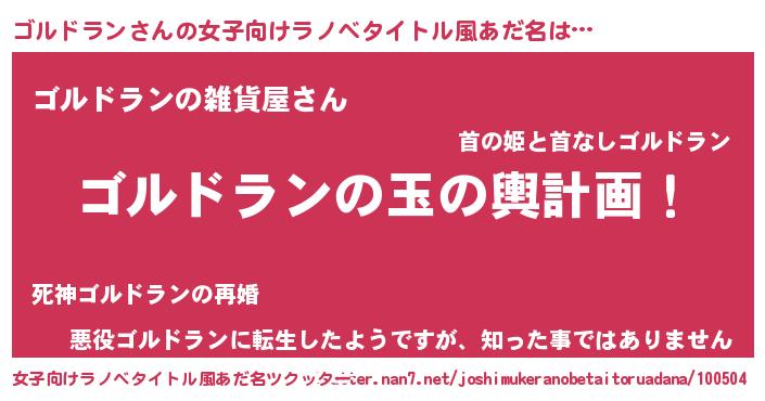 | 男性向けラノベタイトル風あだ名 | 『転生したらゴルドランだった件』 |