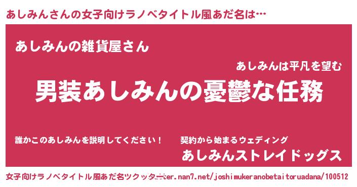 | 意味不明あだ名 | 『あしみんフォーエバー』『自称あしみん』 |