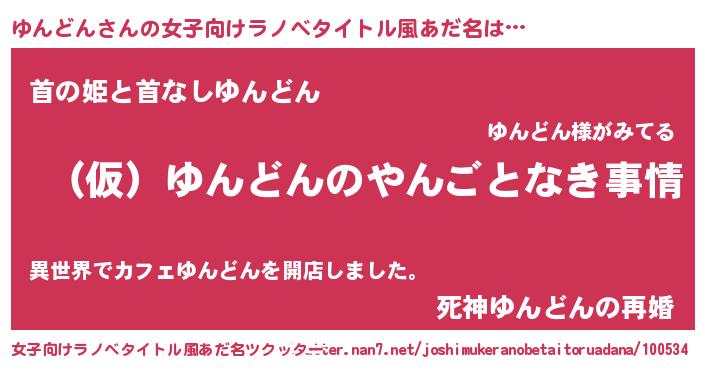 | 男性向けラノベタイトル風あだ名 | 『ゆんどんの憂鬱』 |