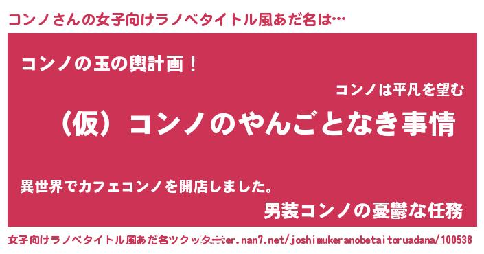 | 男性向けラノベタイトル風あだ名 | 『コンノの憂鬱』 |