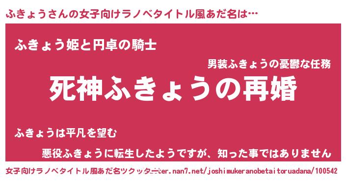| 男性向けラノベタイトル風あだ名 | 『ノーゲーム・ノーフキョウ』 |