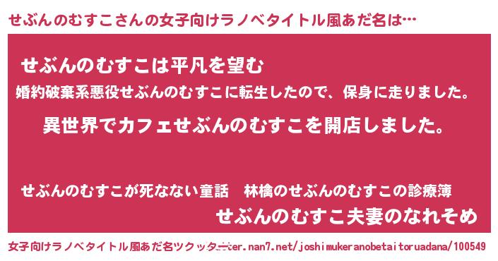 | 意味不明あだ名 | 『永久保存せぶんのむすこ』 |