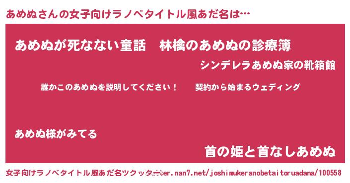 | 胡散臭い通販商品みたいなあだ名 | 『億万長者になれる水晶球…その名も「あめぬ」』 |