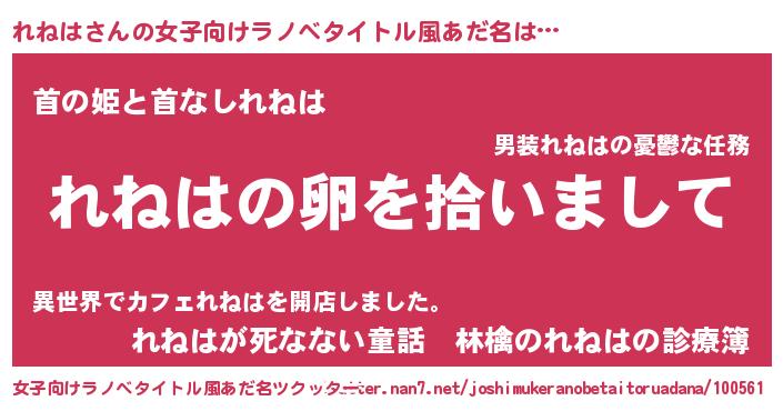| 男性向けラノベタイトル風あだ名 | 『れねはの嫁は女の子じゃないと思った?』 |