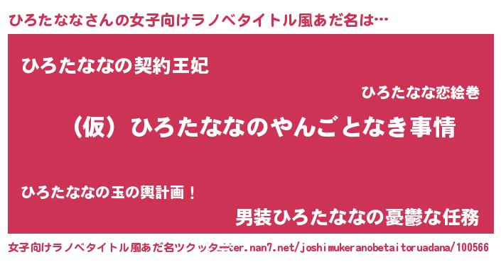 | 男性向けラノベタイトル風あだ名 | 『ひろたななの憂鬱』 |