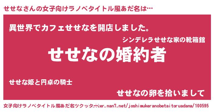 | 男性向けラノベタイトル風あだ名 | 『うちの娘の為ならば、俺はもしかしたらせせなも倒せるかもしれない。』 |