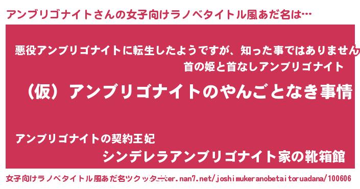 | 男性向けラノベタイトル風あだ名 | 『アンブリゴナイトの憂鬱』 |
