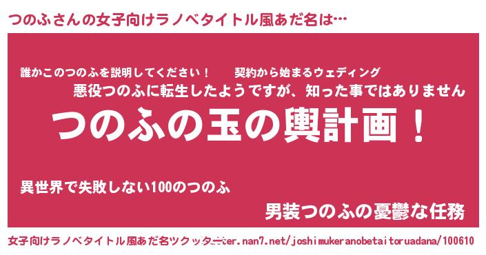 | 男性向けラノベタイトル風あだ名 | 『転生したらつのふだった件』 |