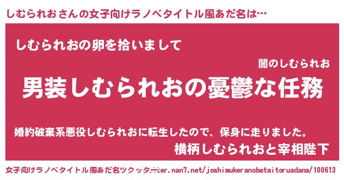 | 男性向けラノベタイトル風あだ名 | 『冴えないしむられおの育てかた』 |