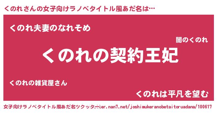 | ヘコむあだ名 | 『くのれ(笑)』『くのを』『酢こんぶ』 |