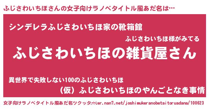 | 男性向けラノベタイトル風あだ名 | 『やはりふじさわいちほの青春ラブコメはまちがっている 』 |