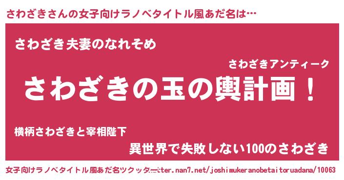 | 男性向けラノベタイトル風あだ名 | 『さわざき~年齢イコール彼女いない歴の魔法使い~』 |
