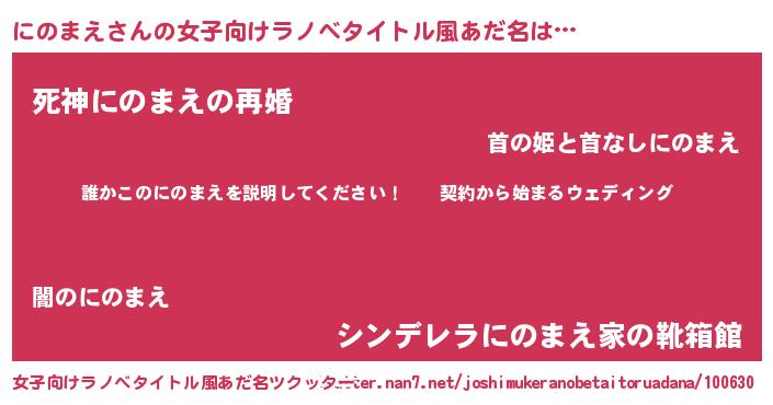 | 男性向けラノベタイトル風あだ名 | 『ニノマエアートオンライン』 |