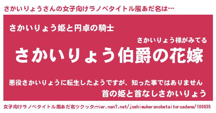 | ファンタジー風あだ名 | 『エターナルサカイリョウー』 |