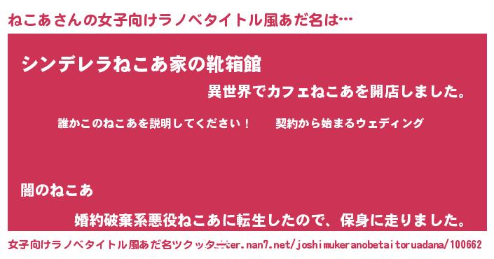 | 胡散臭い通販商品みたいなあだ名 | 『億万長者になれる水晶球…その名も「ねこあ」』 |