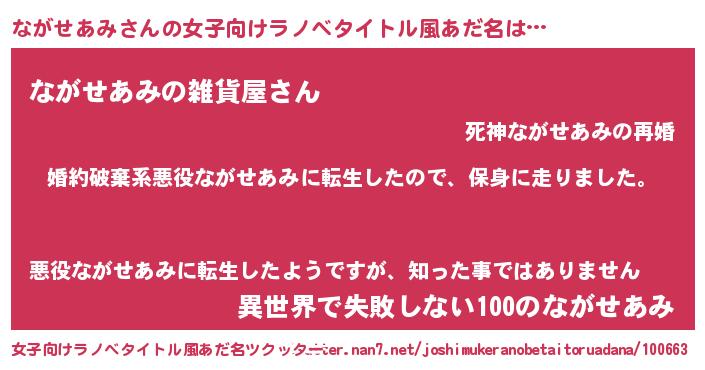 | 男性向けラノベタイトル風あだ名 | 『ナガセアミスレイヤー』 |