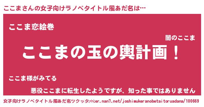 | ヒーロー風カッコイイあだ名 | 『慈愛の使者ここま』『仮面ココダー』 |
