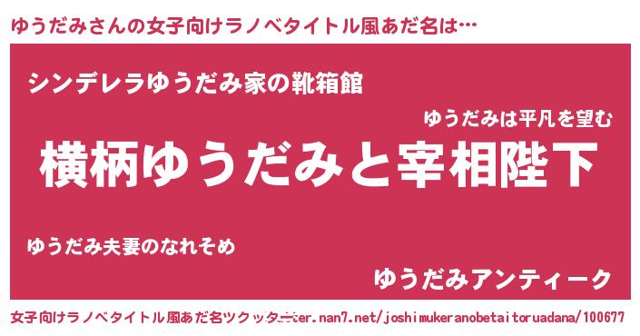 | 男性向けラノベタイトル風あだ名 | 『ゆうだみに滅ぼされるだけの簡単なお仕事です』 |