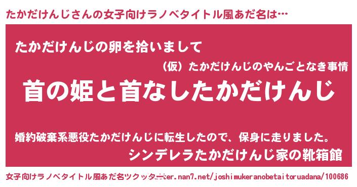 | 胡散臭い通販商品みたいなあだ名 | 『信頼と実績のネックレス…その名も「たかだけんじ」』 |