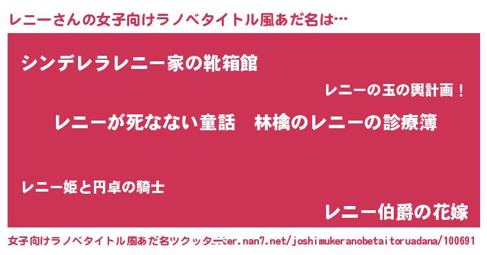 | ヘコむあだ名 | 『つくし』『レニふぇ~』『レニを』 |