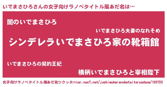 | 意味不明あだ名 | 『自称いでまさひろ』 |