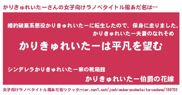 | 胡散臭い通販商品みたいなあだ名 | 『信頼と実績のネックレス…その名も「かりきゅれいたー」』 |