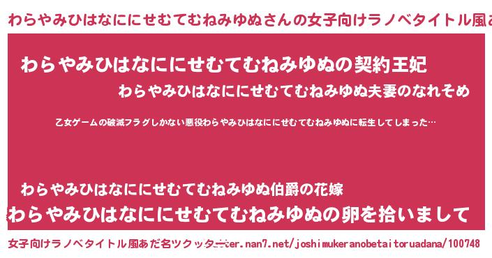 | 男性向けラノベタイトル風あだ名 | 『この素晴らしい世界にわらやみひはなににせむてむねみゆぬを!』 |