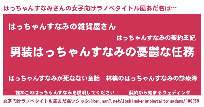 | 男性向けラノベタイトル風あだ名 | 『うちのはっちゃんすなみが世界を掌握している!』 |