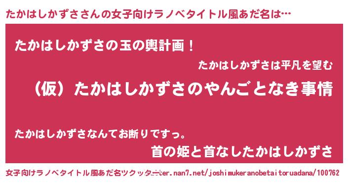 | 肩書あだ名 | 『たかはしかずさ御曹司』 |