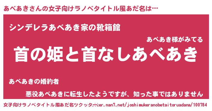 | 男性向けラノベタイトル風あだ名 | 『はたらくあべあきさま!』 |