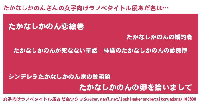 | 意味不明あだ名 | 『住所不定無職たかなしかのん(50歳)』 |