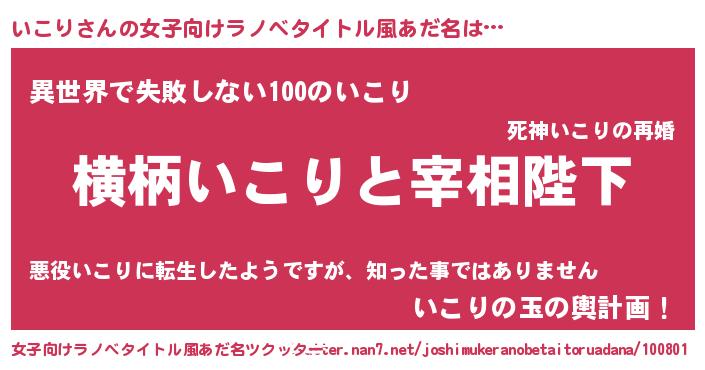 | 男性向けラノベタイトル風あだ名 | 『いこりに滅ぼされるだけの簡単なお仕事です』 |