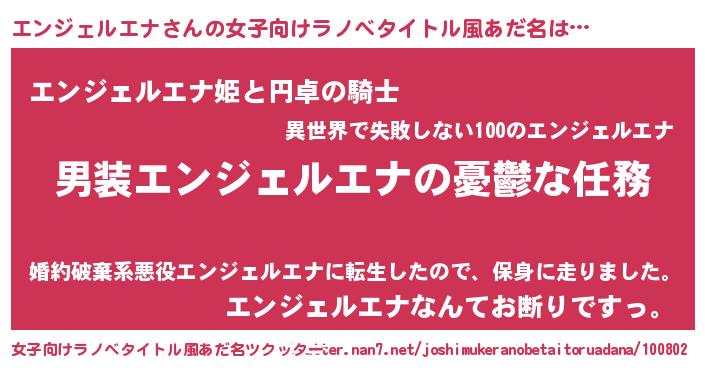 | 男性向けラノベタイトル風あだ名 | 『うちのエンジェルエナが世界を掌握している!』 |