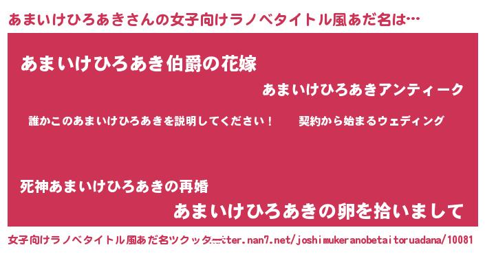 | 男性向けラノベタイトル風あだ名 | 『アマイケヒロアキアートオンライン』 |