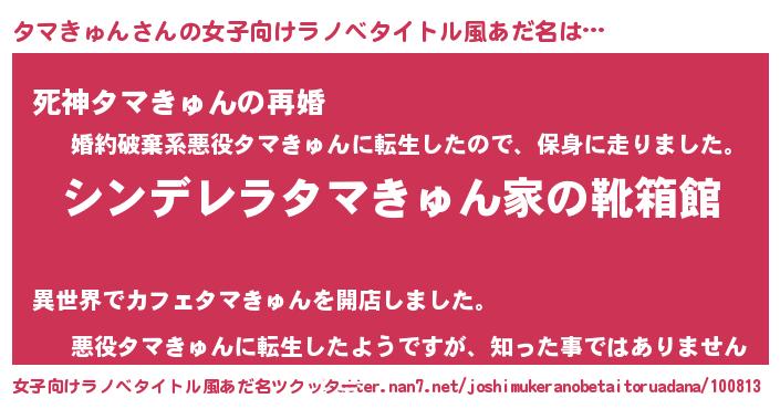 | 男性向けラノベタイトル風あだ名 | 『緋弾のタマキュン』 |