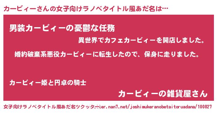 | 男性向けラノベタイトル風あだ名 | 『カービィースレイヤー』 |