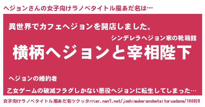 | 男性向けラノベタイトル風あだ名 | 『へジョンに滅ぼされるだけの簡単なお仕事です』 |