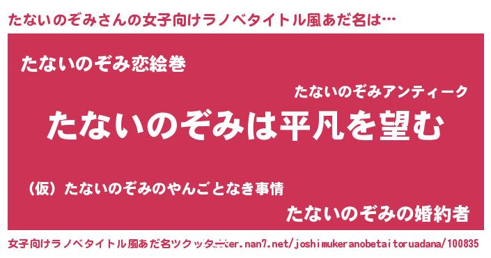 | 意味不明あだ名 | 『とにかく怪しいたないのぞみ』 |