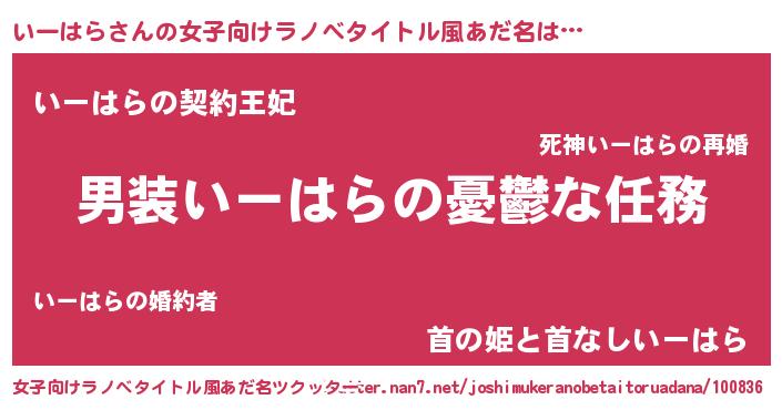 | 男性向けラノベタイトル風あだ名 | 『冴えないいーはらの育てかた』 |
