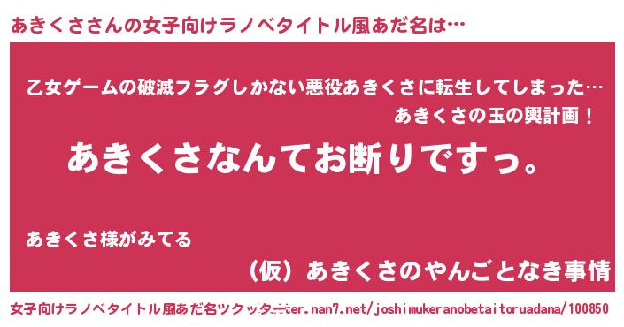 | 男性向けラノベタイトル風あだ名 | 『魔法科高校のあきくさ』 |