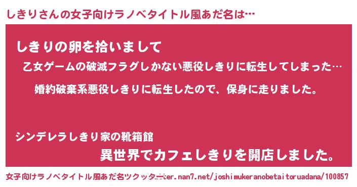 | 胡散臭い通販商品みたいなあだ名 | 『信頼と実績のサプリメント…その名も「しきり」』 |